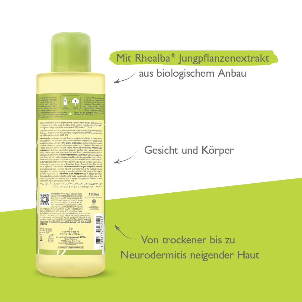 Hochverträgliche pflanzenbasierte und pflegende Reinigung ohne Seife, speziell für zu Neurodermitis neigender Haut entwickelt.