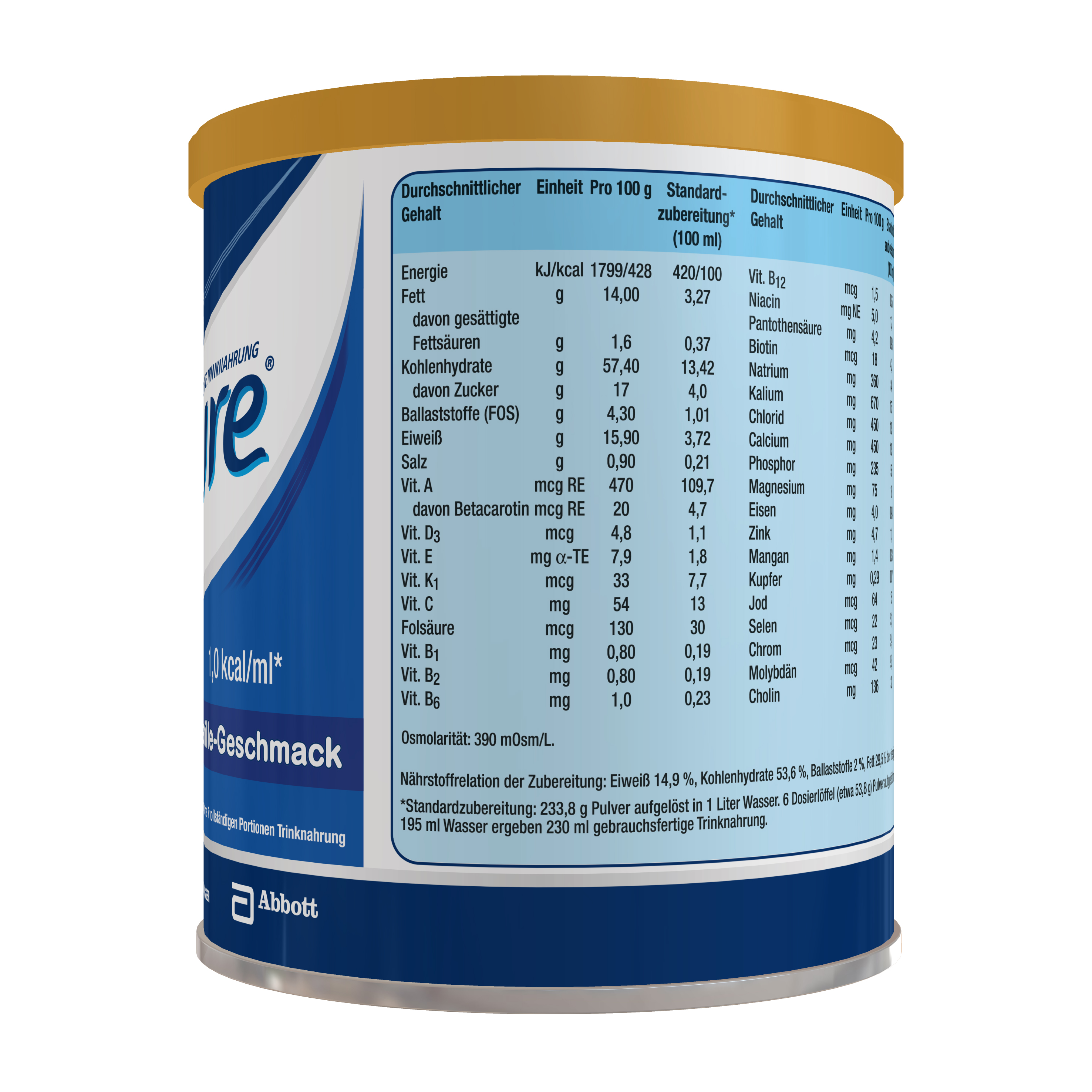 • Abbott Ensure Vanille Pulver 400g ist eine isokalorische Trinknahrung mit präbiotischen Ballaststoffen und milchigem Charakter. Ideal auch zum Anreichern von Speisen und Getränken.