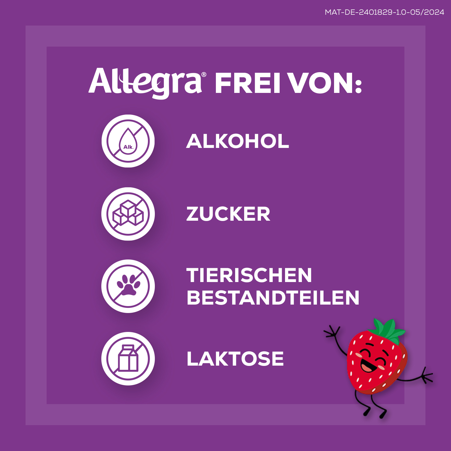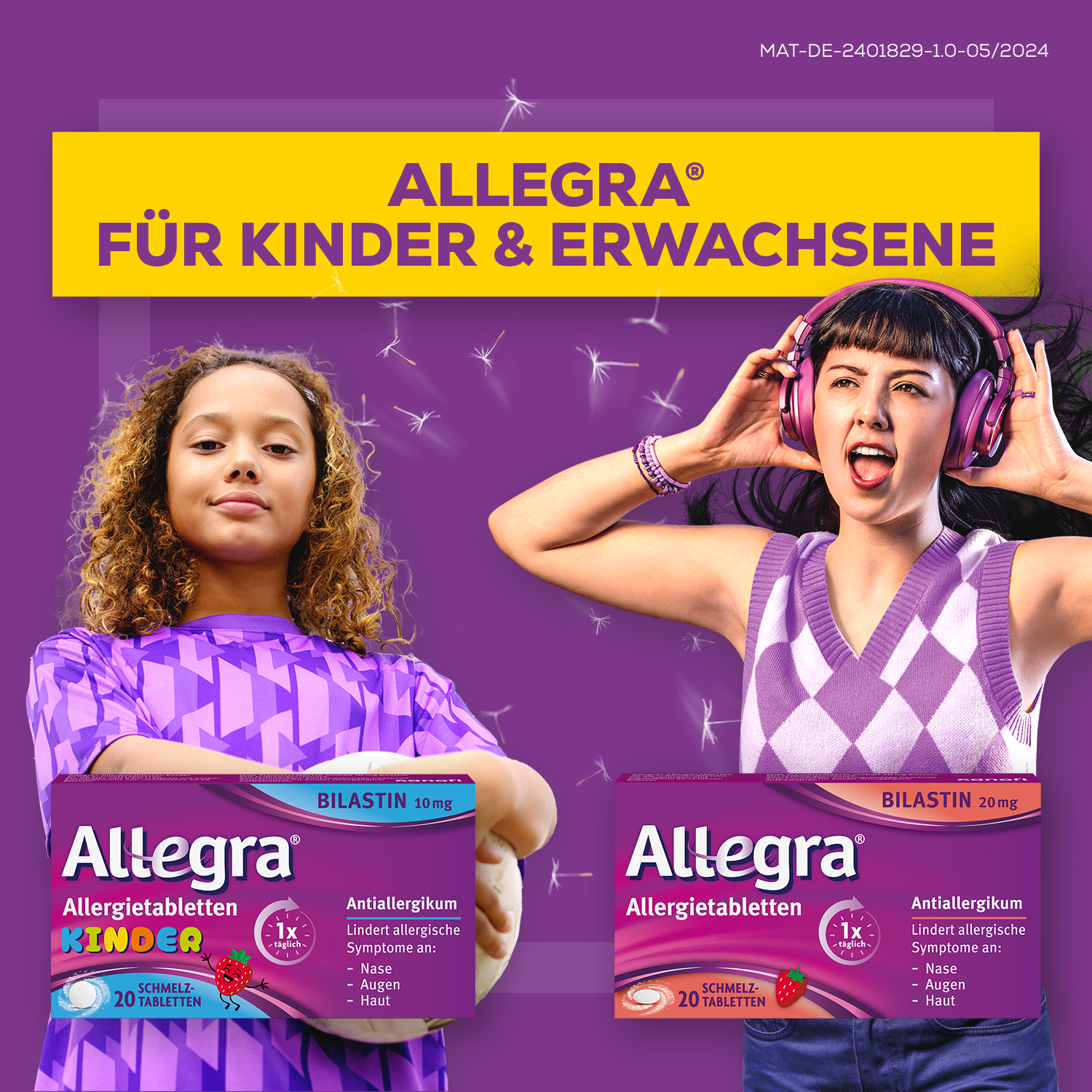 · KINDERLEICHTE EINNAHME: Allegra® Schmelztabletten für Kinder zergehen auf der Zunge und können ohne Wasser eingenommen werden. Sie kontrollieren Allergiesymptome für 24 Stunden bei nur 1x täglicher Einnahme.