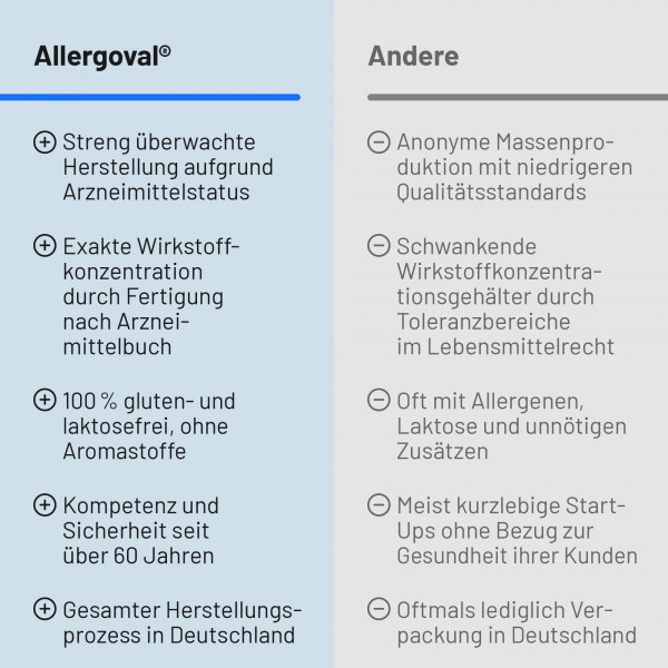 Wenn es bei Ihnen bereits in der Vergangenheit nach dem Genuss von Nahrungsmitteln zu einer lebensbedrohenden allergischen Reaktion (anaphylaktischer Schock) gekommen ist, sollten Sie auch während der Behandlung mit Allergoval Kapseln vorsichtshalber auf den Verzehr der betreffenden Nahrungsmittel verzichten.