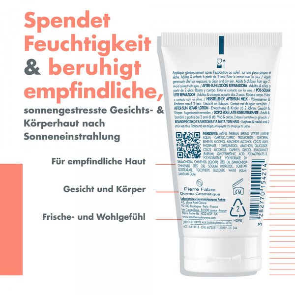 Die Avène After-Sun Repair Lotion spendet Feuchtigkeit, beruhigt und repariert die empfindliche Haut der ganzen Familie.