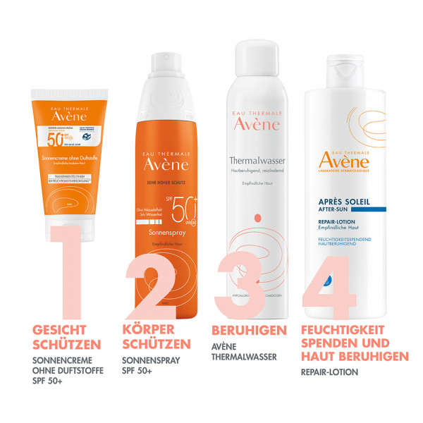 Die Avène Sonnencreme SPF 5+ ohne Duftstoffe basiert auf dem beruhigenden, stärkenden und ausgleichenden Avène Thermalwasser.