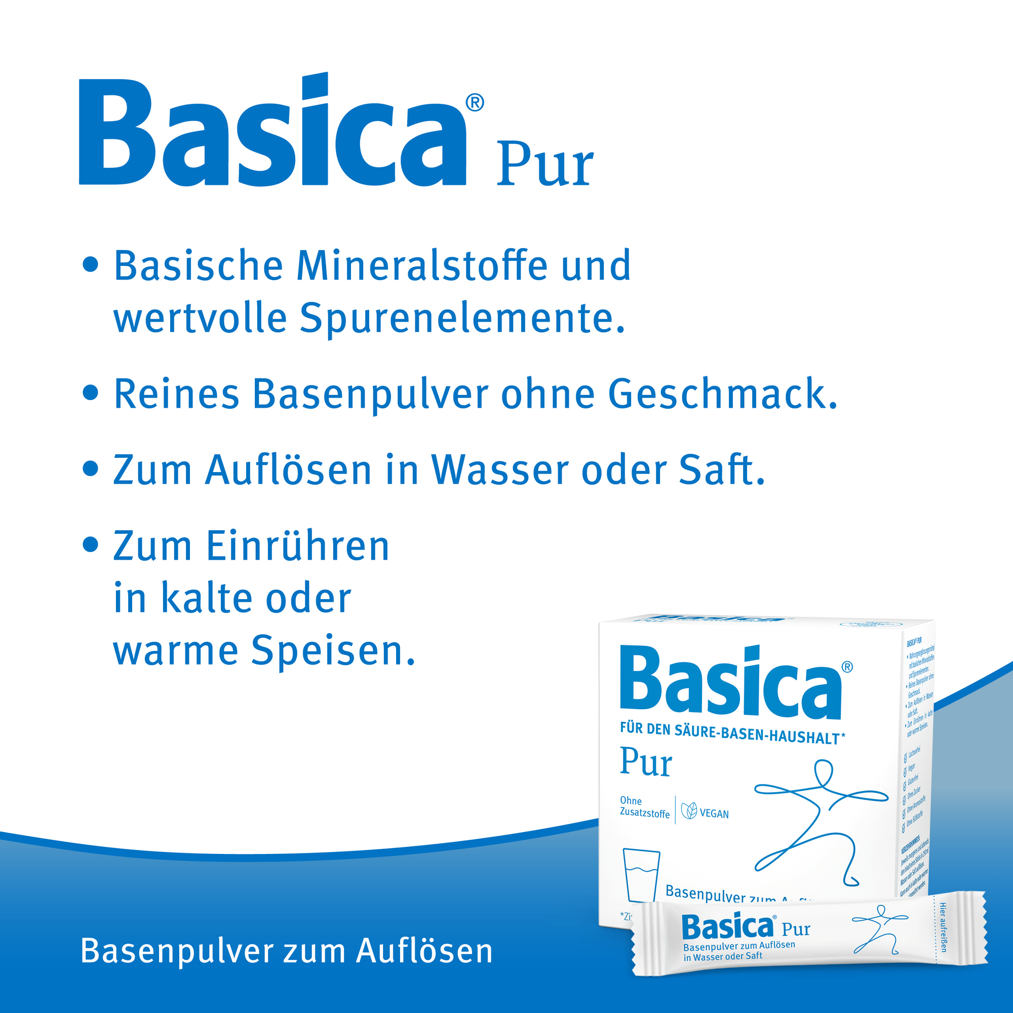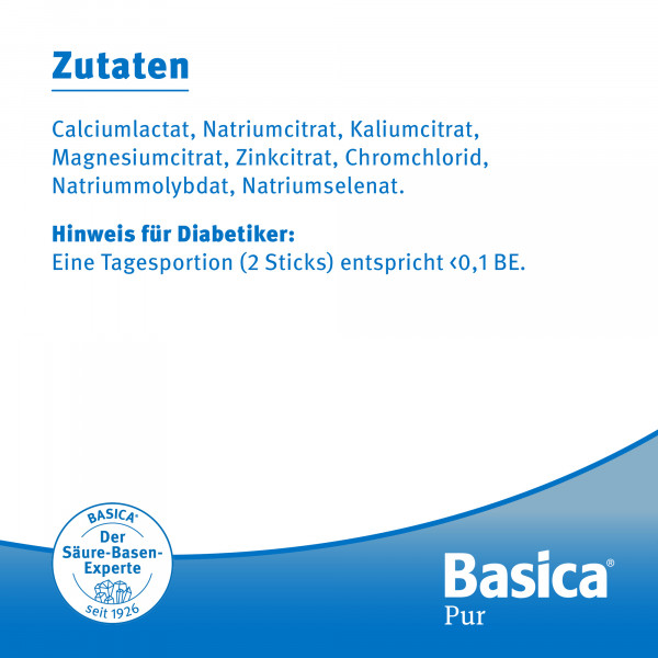 Basica® mit basischen Mineralstoffen und wertvollen Spurenelementen unterstützt das gesundheitliche Wohlbefinden und Zink den normalen Säure-Basen-Stoffwechsel.