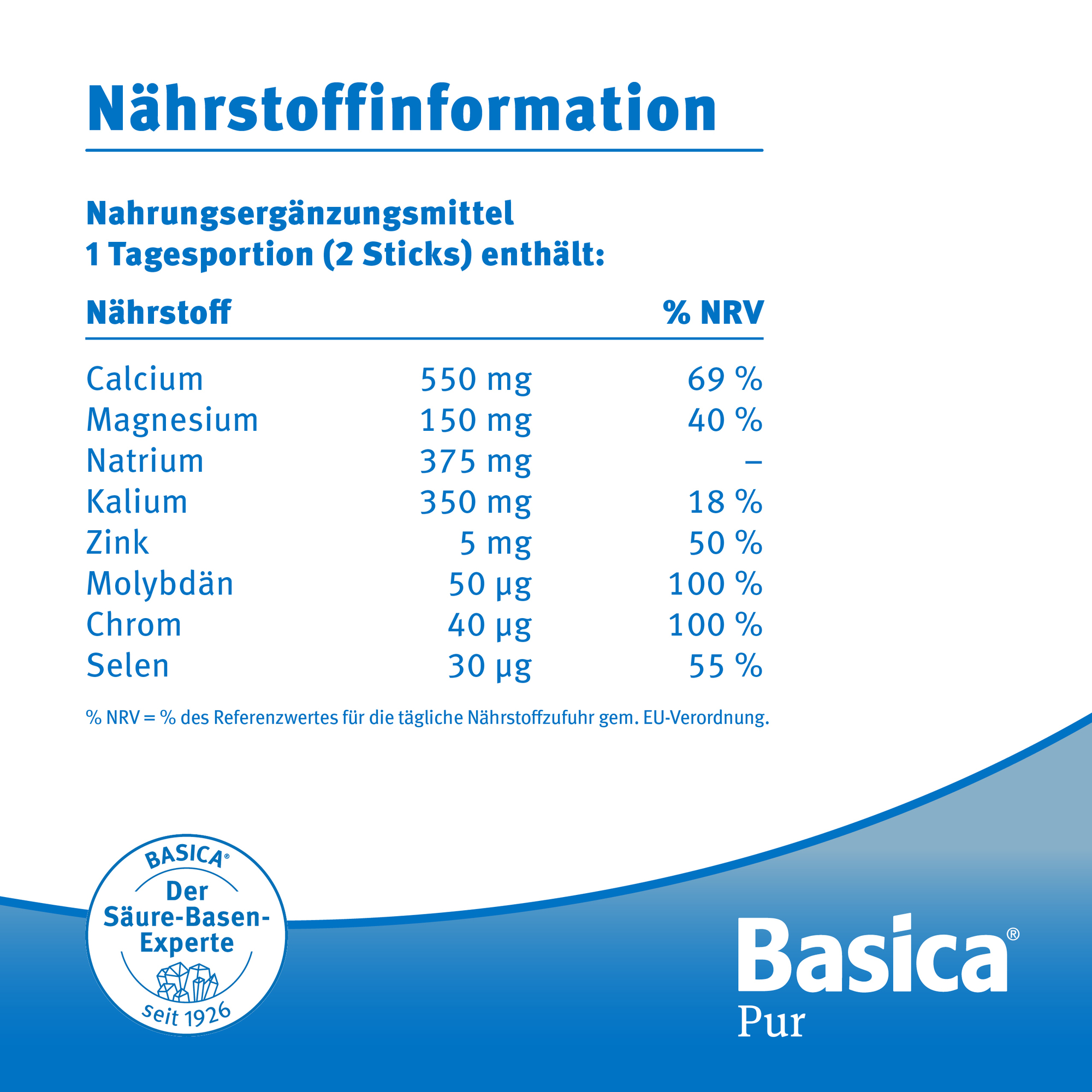 Basica® mit basischen Mineralstoffen und wertvollen Spurenelementen unterstützt das gesundheitliche Wohlbefinden und Zink den normalen Säure-Basen-Stoffwechsel.