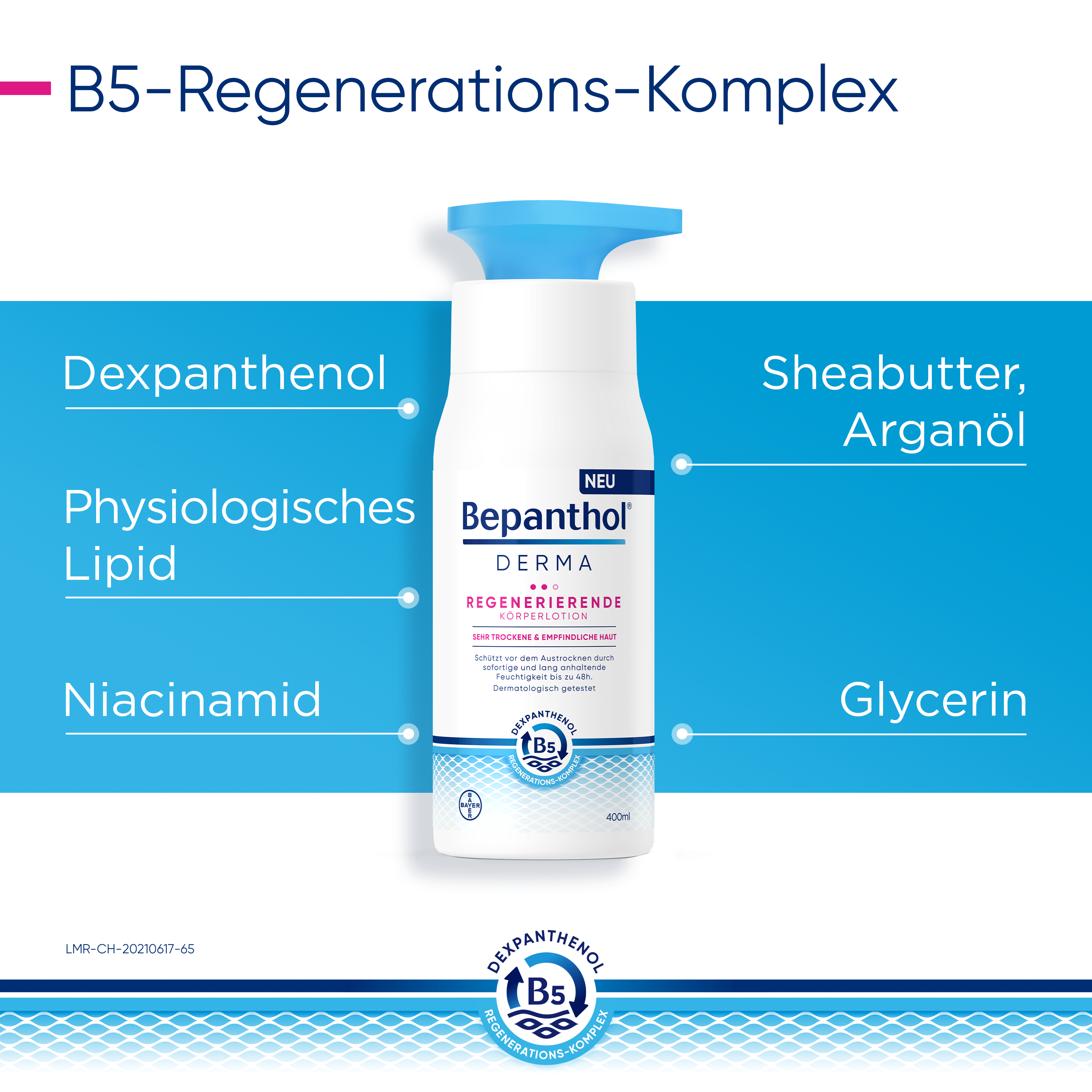 - Die Regenerierende Körperlotion ist eine dermatologisch getestete medizinische Hautpflege aus dem Hause Bepanthen® – wissenschaftlich fundiert und von Fachleuten empfohlen.