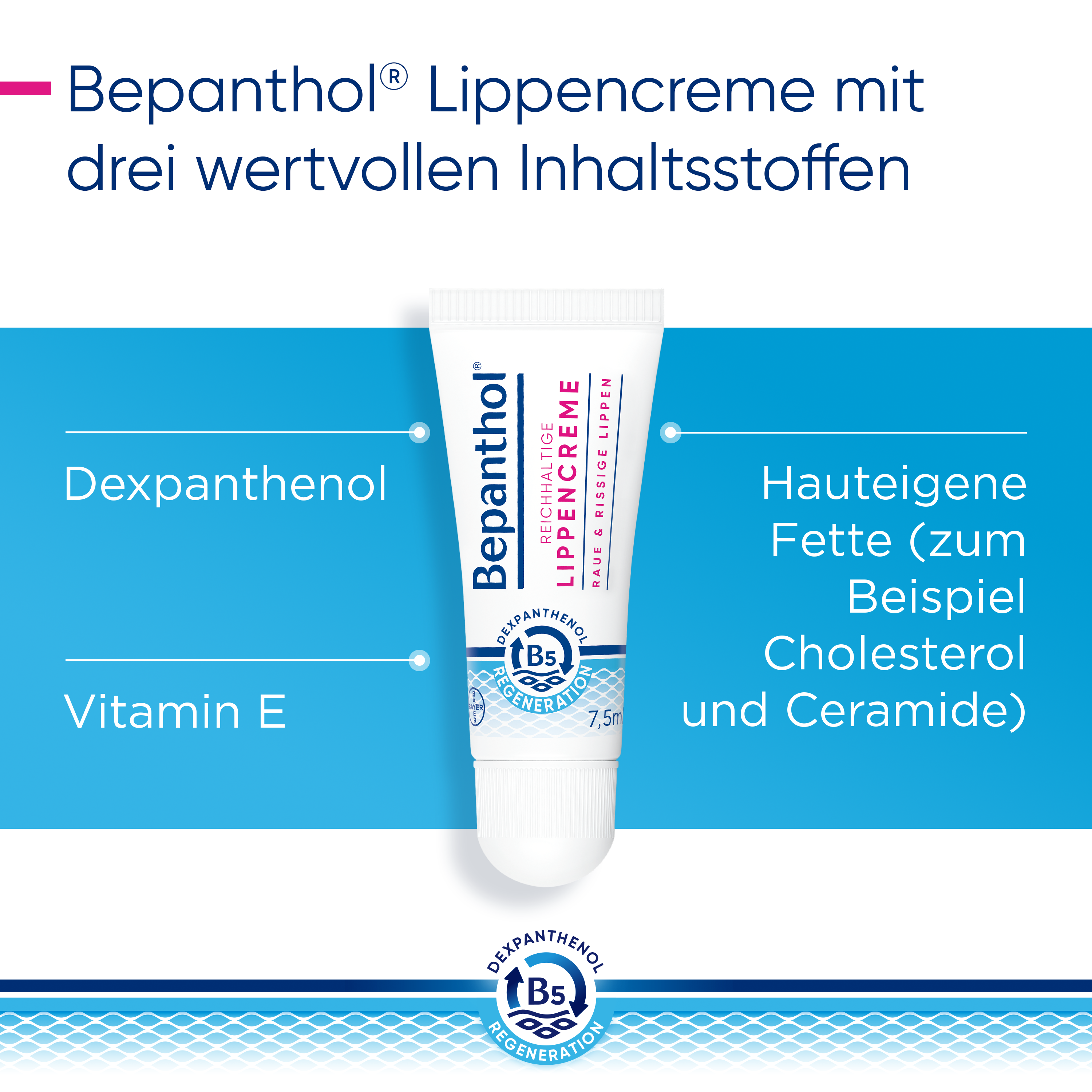 Damit sich die Lippen wieder zart und weich anfühlen, setzt die Bepanthol® Reichhaltige Lippencreme auf die Wirkung von zwei Inhaltsstoffen: