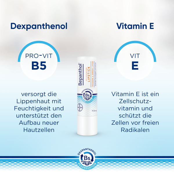 Dexpanthenol versorgt die Lippenhaut mit Feuchtigkeit und unterstützt den Aufbau neuer Hautzellen.