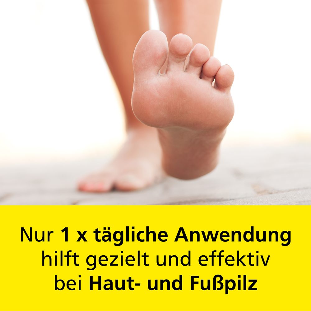 Die Anwendungsdauer richtet sich nach der Art der Beschwerden und/oder dem Verlauf der Erkrankung. Behandlungsdauer: bei Fußpilz und bei Pilzinfektionen zwischen den Zehen oder Fingern 3 Wochen, bei Pilzbefall der Haut und bei Pilzbefalll in Hautfalten mit Fadenpilzen 2-3 Wochen, bei Hautflechte durch Kleienpilz und Zwergflechte 2 Wochen, bei Pilzbefall der Haut mit Hefepilzen 2-4 Wochen.