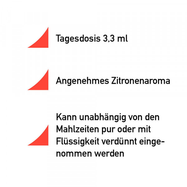 • Mit L-Carnitin in hoher Dosierung (303 mg Levocarnitin pro ml Sirup)