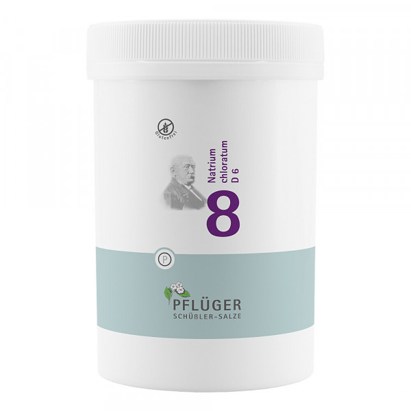Biochemie Pflüger Nr. 8 Natrium chloratum D 6 ist ein biochemisches Funktionsmittel nach Dr. Schüßler. Registriertes homöopathisches Arzneimittel, daher ohne Angabe einer therapeutischen Indikation. Bei Fortdauern der Krankheitssymptome während der Anwendung soll medizinischer Rat eingeholt werden.