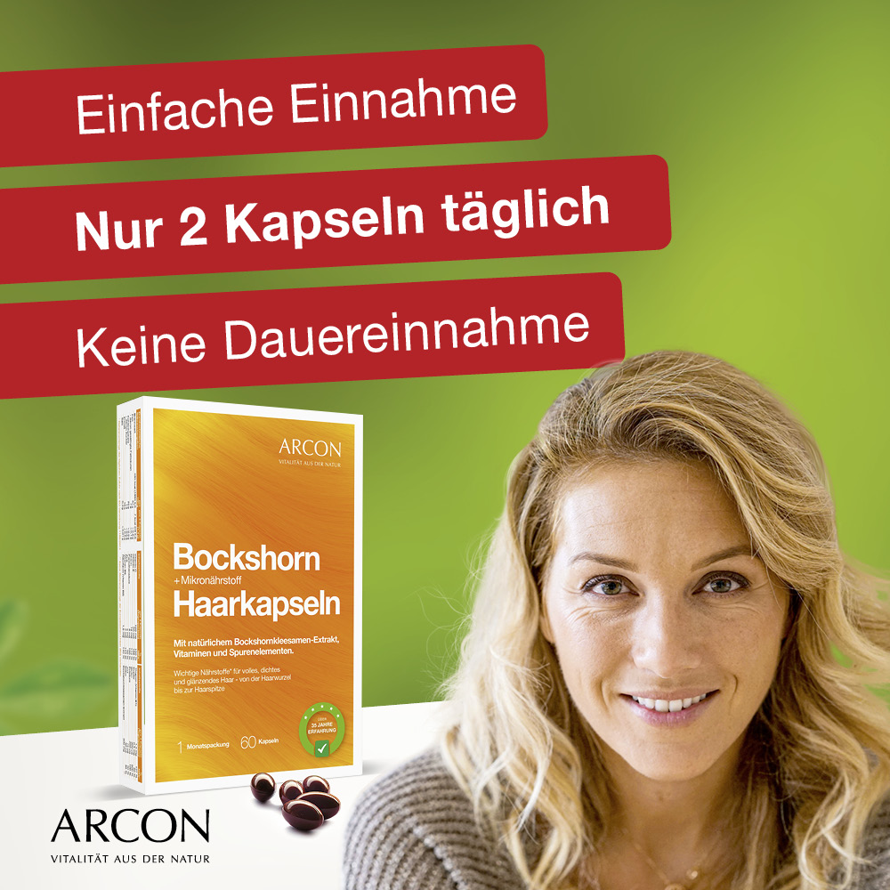 Nehmen Sie täglich, am besten mit der ersten Mahlzeit des Tages, 2 Kapseln mit etwas Flüssigkeit ein. Es empfiehlt sich, die Bockshorn + Mikronährstoff Haarkapseln über einen Zeitraum von mindestens 4 Monaten anzuwenden.