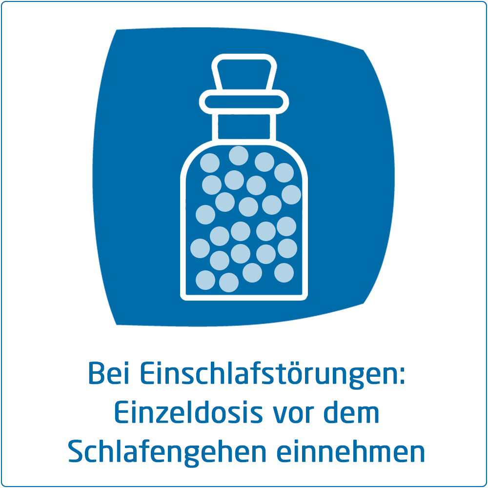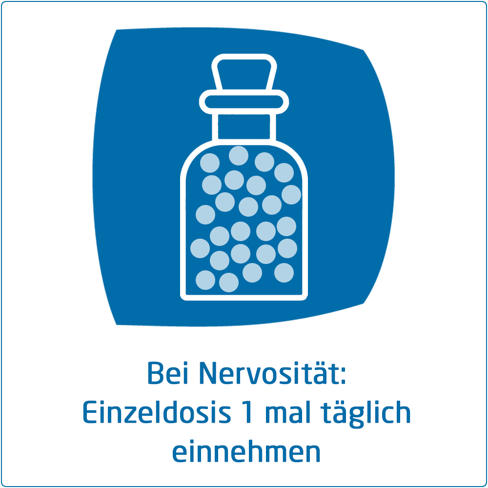 Falls vom Arzt nicht anders verordnet, erhalten Erwachsene und Kinder ab 6 Jahren als Einzeldosis 15 Streukügelchen, Kleinkinder von 1–5 Jahren 10 Streukügelchen, Säuglinge im 1. Lebensjahr 5 Streukügelchen. Bei Einschlafstörungen wird die Einzeldosis abends vor dem Schlafengehen eingenommen, bei Nervosität wird die entsprechende Menge Streukügelchen 1-mal täglich eingenommen.