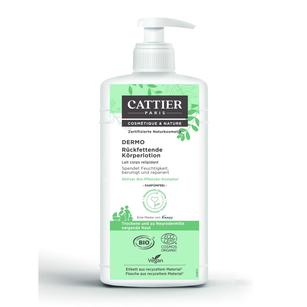 CATTIER PARIS Dermo Rückfettende Körperlotion - lindert Spannungsgefühle und repariert trockene bis sehr trockene, beanspruchte und zu Neurodermitis neigende Haut - 500ml