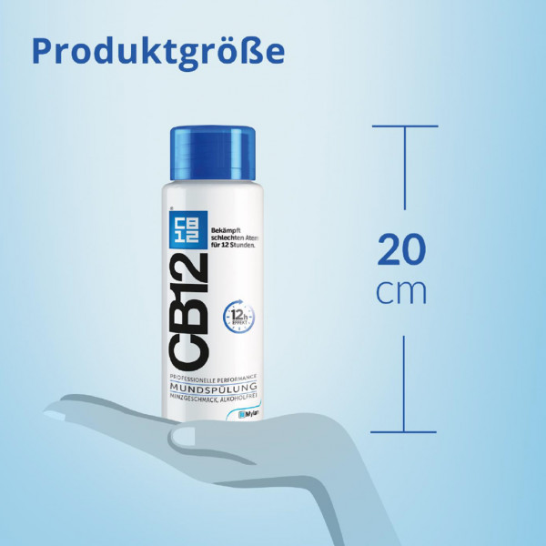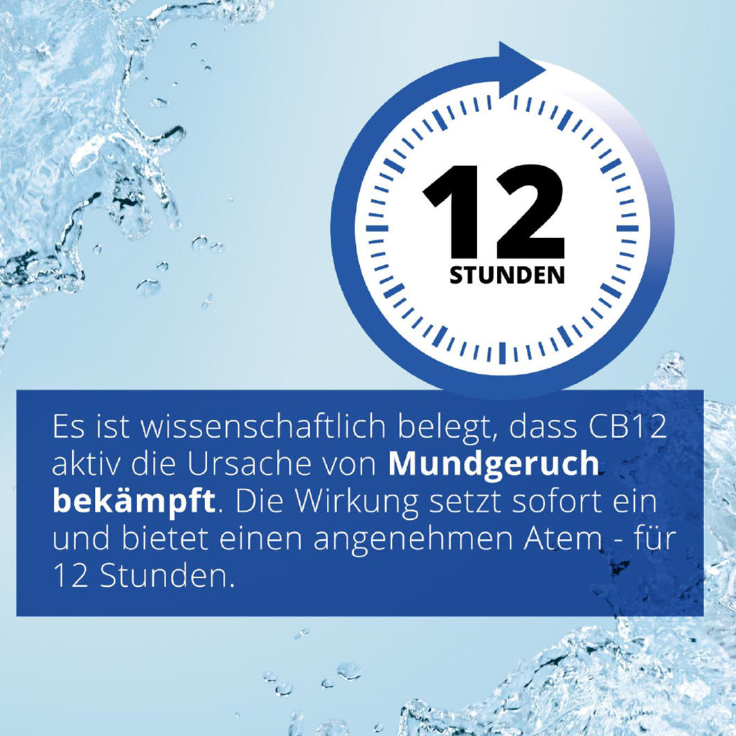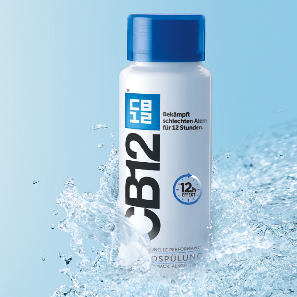 Das Produkt enthält 0,3% Zink, 0,025% Chlorhexidin und 0,05% Natriumfluorid. CB12 schmeckt frisch nach Minze und Menthol.