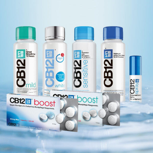 Die Bakterien produzieren dort flüchtige Schwefelverbindungen (VSC). Die entstehenden Gase sind dabei größtenteils für den Mundgeruch verantwortlich. Durch zu aggressive Mundhygiene, Zahnsteinbildungen oder Zahnfleischrückgang können die Dentinkanälchen an den Zähnen frei liegen. Ist dies der Fall, erzeugen Zugluft, Wärme, Kälte oder süßes bzw. saures Essen Reize, welche direkt an den Zahnnerv geleitet werden. Das kann zu ziehenden oder stechenden Schmerzen führen. CB12 Sensitive Mundspülung sorgt für frischen Atem bei sensiblen Zähnen und empfindlichen Zahnfleisch. Es hilft dabei, einen Schutzschild um freiliegende Dentinkanälchen aufzubauen, verleiht Ihnen Atemfrische und stärkt Ihren Zahnschmelz.