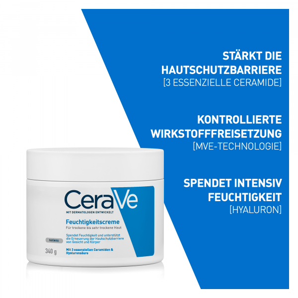 - Die CeraVe Feuchtigkeitscreme mit innovativer MVE Wirkstoff-Freisetzung spendet 24 Stunden intensive Feuchtigkeit ohne Nachcremen.