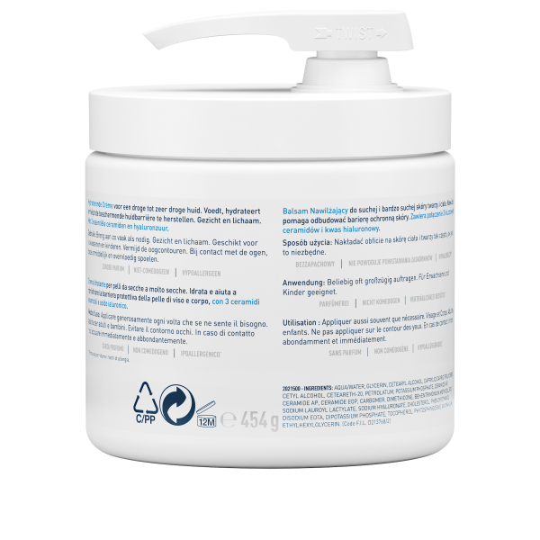 AQUA / WATER • GLYCERIN • CETEARYL ALCOHOL • CAPRYLIC/CAPRIC TRIGLYCERIDE • CETYL ALCOHOL • CETEARETH-20 • PETROLATUM • DIMETHICONE • PHENOXYETHANOL • BEHENTRIMONIUM METHOSULFATE • POTASSIUM PHOSPHATE • ETHYLHEXYLGLYCERIN • SODIUM LAUROYL LACTYLATE • DISODIUM EDTA • DIPOTASSIUM PHOSPHATE • CERAMIDE NP • CERAMIDE AP • PHYTOSPHINGOSINE • CHOLESTEROL • XANTHAN GUM • CARBOMER • SODIUM HYALURONATE • TOCOPHEROL • CERAMIDE EOP