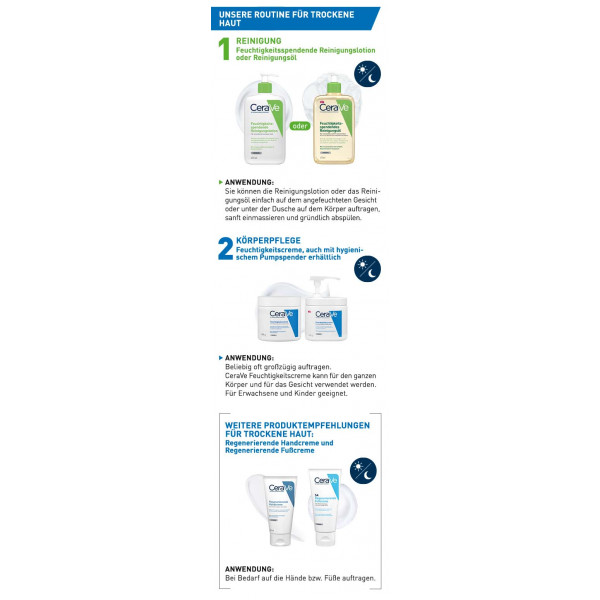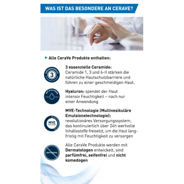- Die CeraVe Feuchtigkeitscreme mit innovativer MVE Wirkstoff-Freisetzung spendet 24 Stunden intensive Feuchtigkeit ohne Nachcremen.