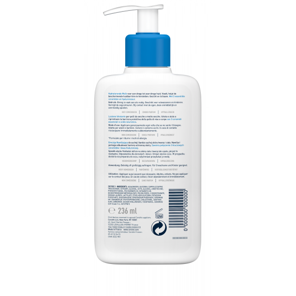Die Feuchtigkeitslotion von CeraVe kann beliebig oft und großzügig auf die gereinigte Haut von Gesicht und Körper aufgetragen werden. Diese dafür regelmäßig insbesondere auf trockene und sehr trockene Hautstellen geben und sanft in kreisenden Bewegungen einmassieren. Die Augenkonturen aussparen. Dank ihrer nicht-komedogenen und parfumfreien Formel kann die feuchtigkeitsspendende Pflegelotion für alle Hauttypen, einschließlich für zu Neurodermitis und Allergien neigende Haut verwendet werden. Um die Pflegeroutine zu intensivieren eignet sich darüber hinaus ein CeraVe Reinigungsprodukt für trockene Haut.