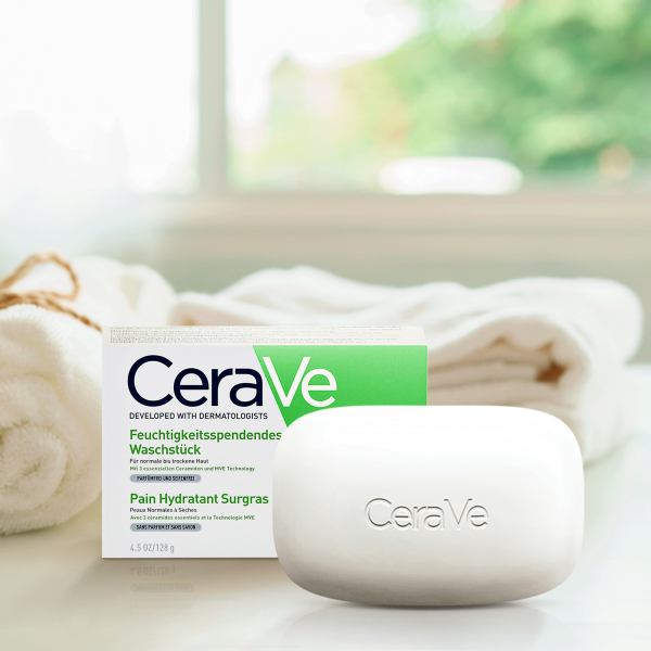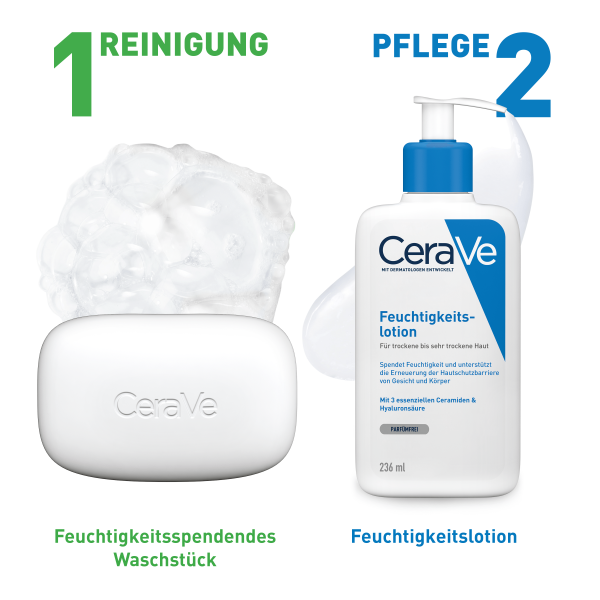 CeraVe Feuchtigkeitsspendendes Waschstück reinigt die Haut sanft. Es entfernt effektiv Schmutz, Make-up und Öl und ist nicht komedogen. Dank 5% Feuchtigkeitscreme spendet es der Haut beim Reinigen Feuchtigkeit. Dabei enthält es eine Kombination aus drei essenziellen Ceramiden 1, 3 und 6-II, die die Hautschutzbarriere aufbaut und die Haut wieder zart und samtig macht. Die aktiven Wirkstoffe wie Ceramide und Hyaluron werden durch die patentierte Wirkstoff-Freisetzung über den Tag freigesetzt und geben der trockenen Haut ihr Wohlbefinden zurück.