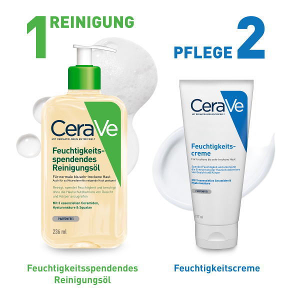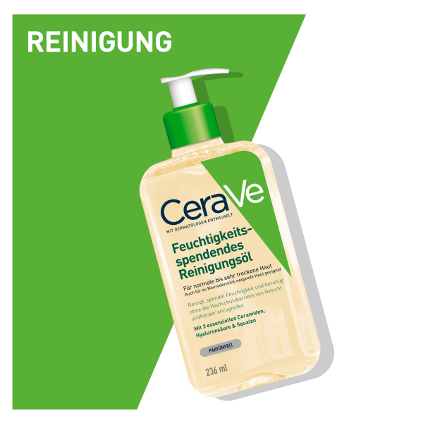 - Das Reinigungsöl von CeraVe verzichtet auf Duftstoffe und Seife und eignet sich somit auch für Babyhaut sowie bei Neurodermitis und Allergien.