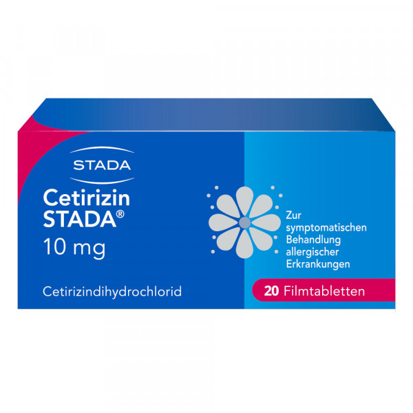 In der Therapie von Allergiesymptomen wie chronisch-allergischem Schnupfen oder chronischer Nesselsucht haben sich Antiallergika bewährt. Antihistaminika wie Cetirizin STADA® verhindern die Wirkung von Histamin im Körper, also von der Substanz, die im Körpergewebe unter anderem für die allergischen Symptome sorgt. Das schließt z. B. die geschwollene Nasenschleimhaut bei Heuschnupfen mit ein. Bei Cetirizin STADA® handelt es sich um ein schnell und zuverlässig wirkendes Antihistaminikum. Bereits 20 Minuten nach Einnahme der Filmtablette ist in der Regel die antiallergische Wirkung spürbar, die sich über 24 Stunden hält. SO WIRKT CETIRIZIN STADA® Cetirizin STADA® ist wirksam gegen Allergiesymptome wie Heuschnupfen.