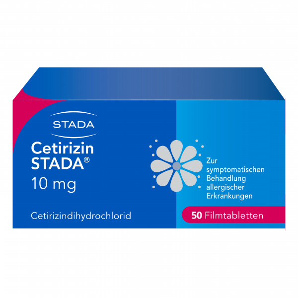In der Therapie von Allergiesymptomen wie chronisch-allergischem Schnupfen oder chronischer Nesselsucht haben sich Antiallergika bewährt. Antihistaminika wie Cetirizin STADA® verhindern die Wirkung von Histamin im Körper, also von der Substanz, die im Körpergewebe unter anderem für die allergischen Symptome sorgt. Das schließt z. B. die geschwollene Nasenschleimhaut bei Heuschnupfen mit ein. Bei Cetirizin STADA® handelt es sich um ein schnell und zuverlässig wirkendes Antihistaminikum. Bereits 20 Minuten nach Einnahme der Filmtablette ist in der Regel die antiallergische Wirkung spürbar, die sich über 24 Stunden hält. SO WIRKT CETIRIZIN STADA® Cetirizin STADA® ist wirksam gegen Allergiesymptome wie Heuschnupfen.