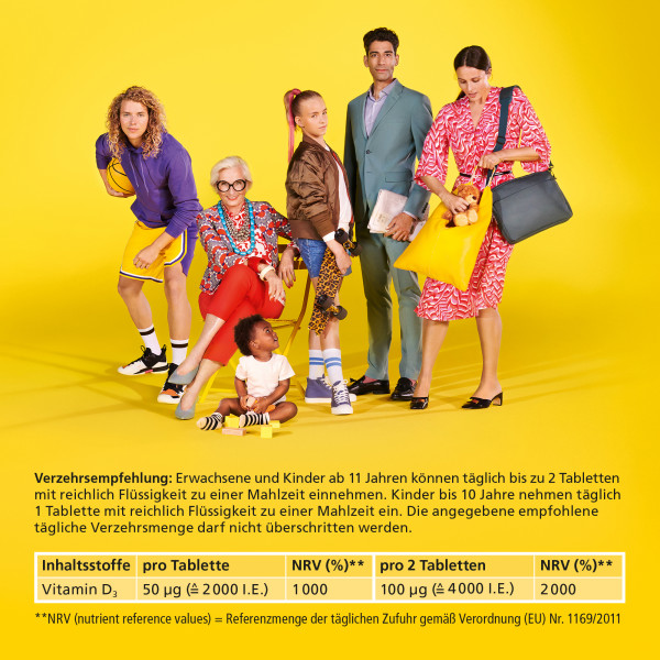 *Nahrungsergänzungsmittel: Vitamin D trägt zu einer normalen Funktion des Immunsystems und zur Erhaltung normaler Knochen und Muskeln bei. Nahrungsergänzungsmittel sind kein Ersatz für eine ausgewogene, abwechslungsreiche Ernährung und eine gesunde Lebensweise.