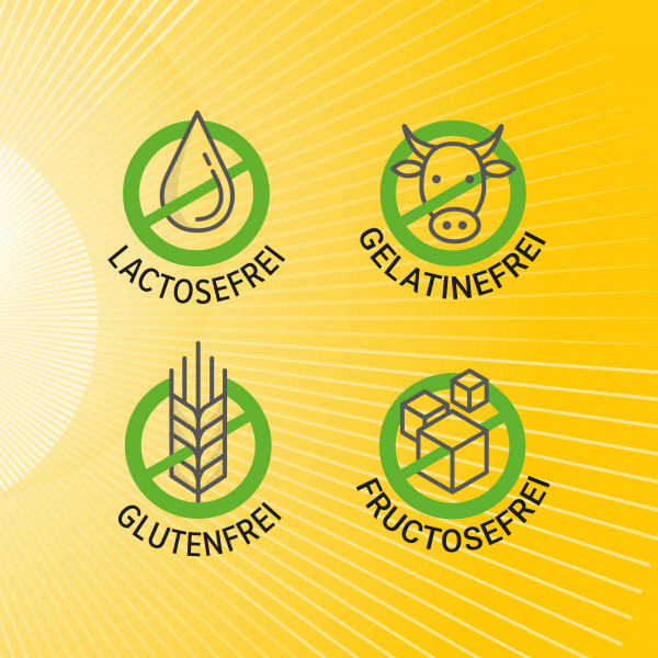 - Frei von Gelatine, Gluten, Lactose und Fructose
