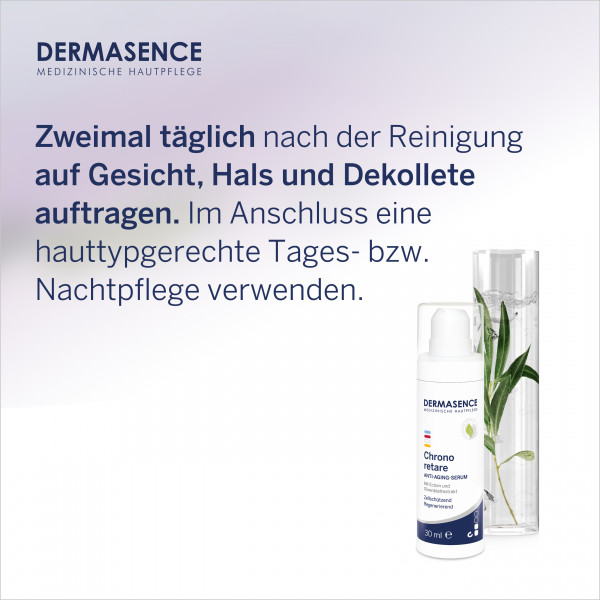 Das Regenerationsserum für die reife Haut ist ideal für Gesicht, Hals und Dekolleté. Mindert mit Olivenblattextrakt vorzeitige Hautalterung und reduziert mit Hyaluron Trockenheitsfältchen. Die Regeneration der Haut wird mit Ectoin gefördert, es sorgt für eine gesunde Ausstrahlung.