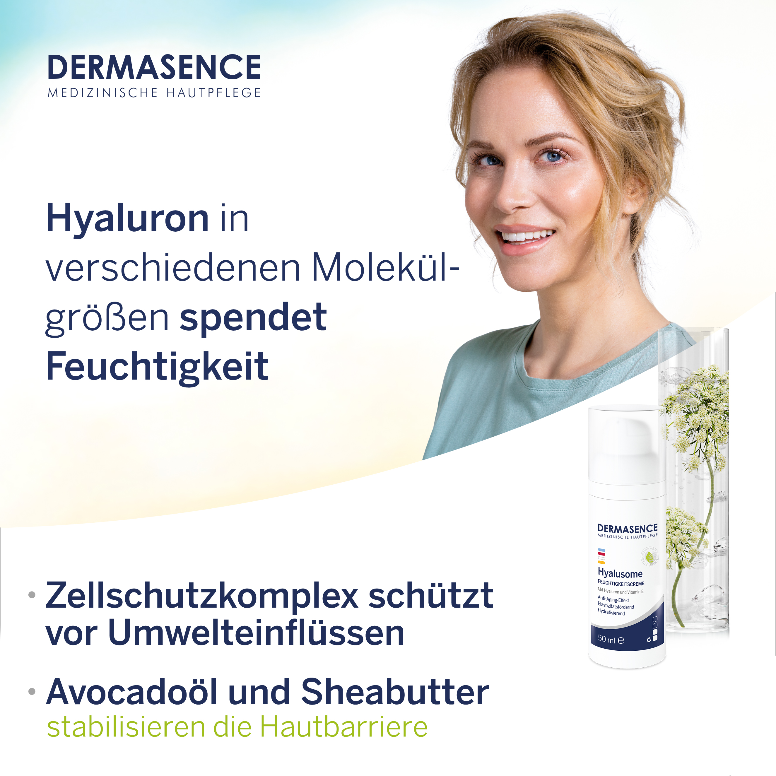 Pflegetipp: Zur intensiveren Feuchtigkeitspflege empfehlen wir vorab das DERMASENCE Hyalusome Konzentrat.