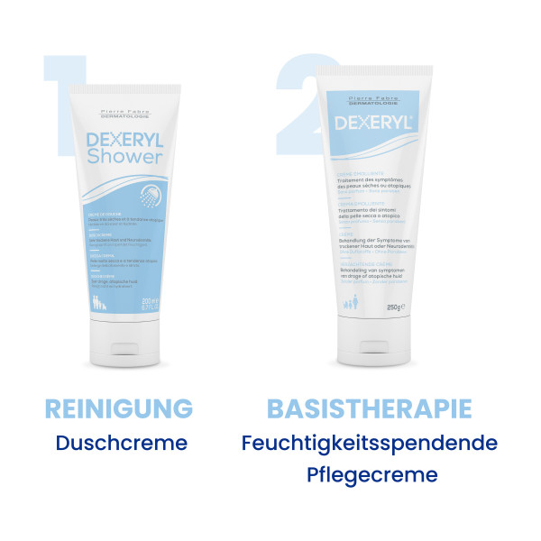 Trockene Haut und spezifische Erkrankungen der Haut erfordern eine besonders sorgfältige Pflege. Die Kombination der Inhaltsstoffe in DEXERYL® Pflegecreme sorgt für eine Feuchtigkeitsversorgung (Glycerin) und hilft, die Hautbarriere wiederherzustellen und zu stärken. Die Pflegecreme zieht schnell in die Haut ein, ohne einen fettigen Film auf der Haut zu hinterlassen, und bietet Linderung bei Trockenheit und Juckreiz.
