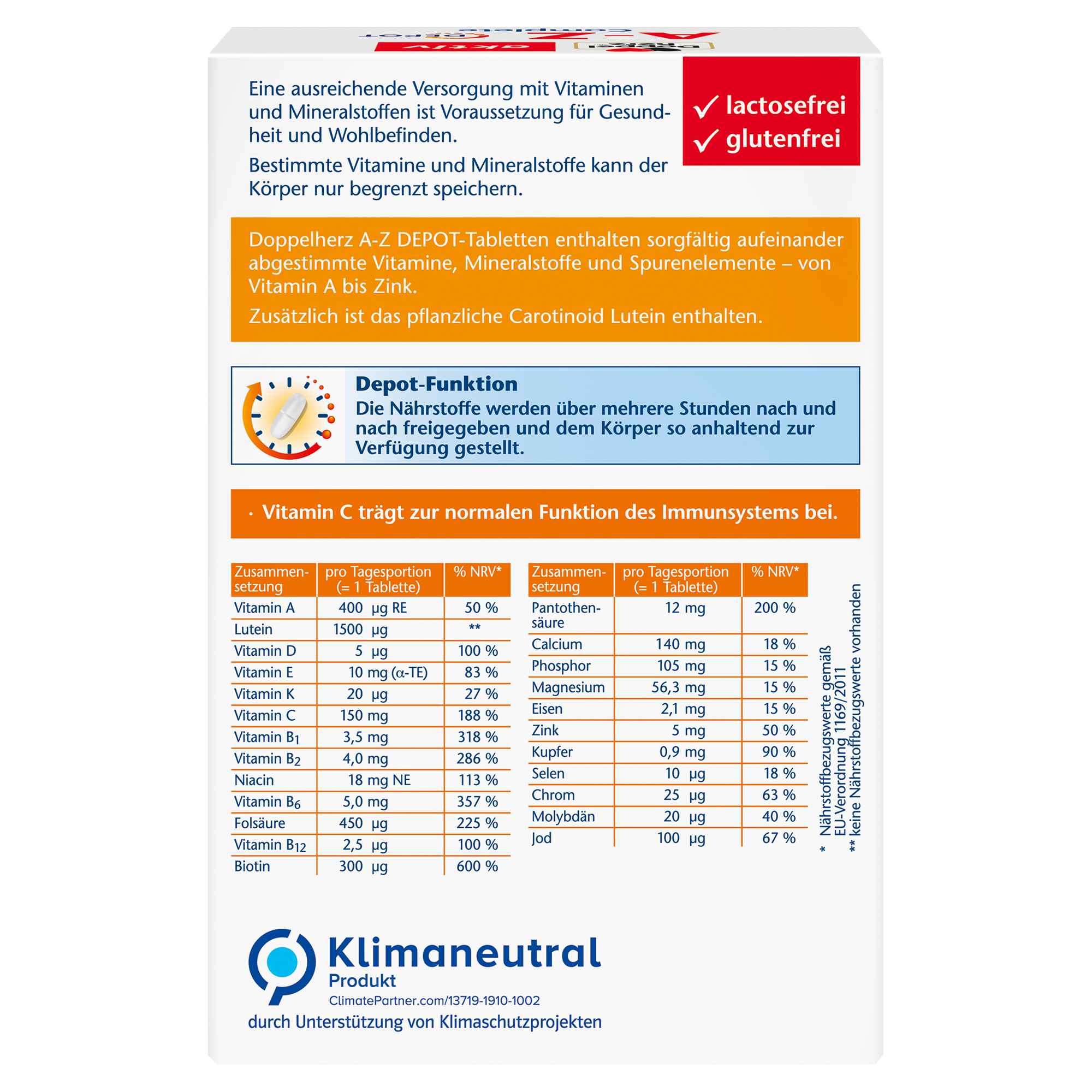 DoppelherzNahrungsergänzungsmittel sind kein Ersatz für eine ausgewogene und abwechslungsreiche Ernährung und eine gesunde Lebensweise. Die angegebene empfohlene tägliche Verzehrsmenge darf nicht überschritten werden. Außerhalb der Reichweite von kleinen Kindern aufbewahren.