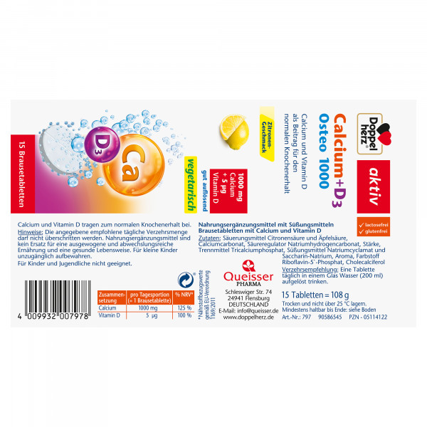 DOPPELHERZ Calcium+D3 Osteo 1.000 Brausetabletten