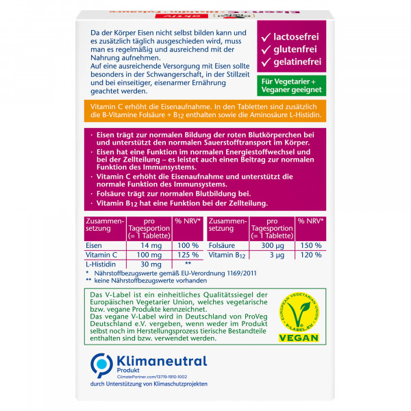 • Vitamin C erhöht die Eisenaufnahme und unterstützt die normale Funktion des Immunsystems