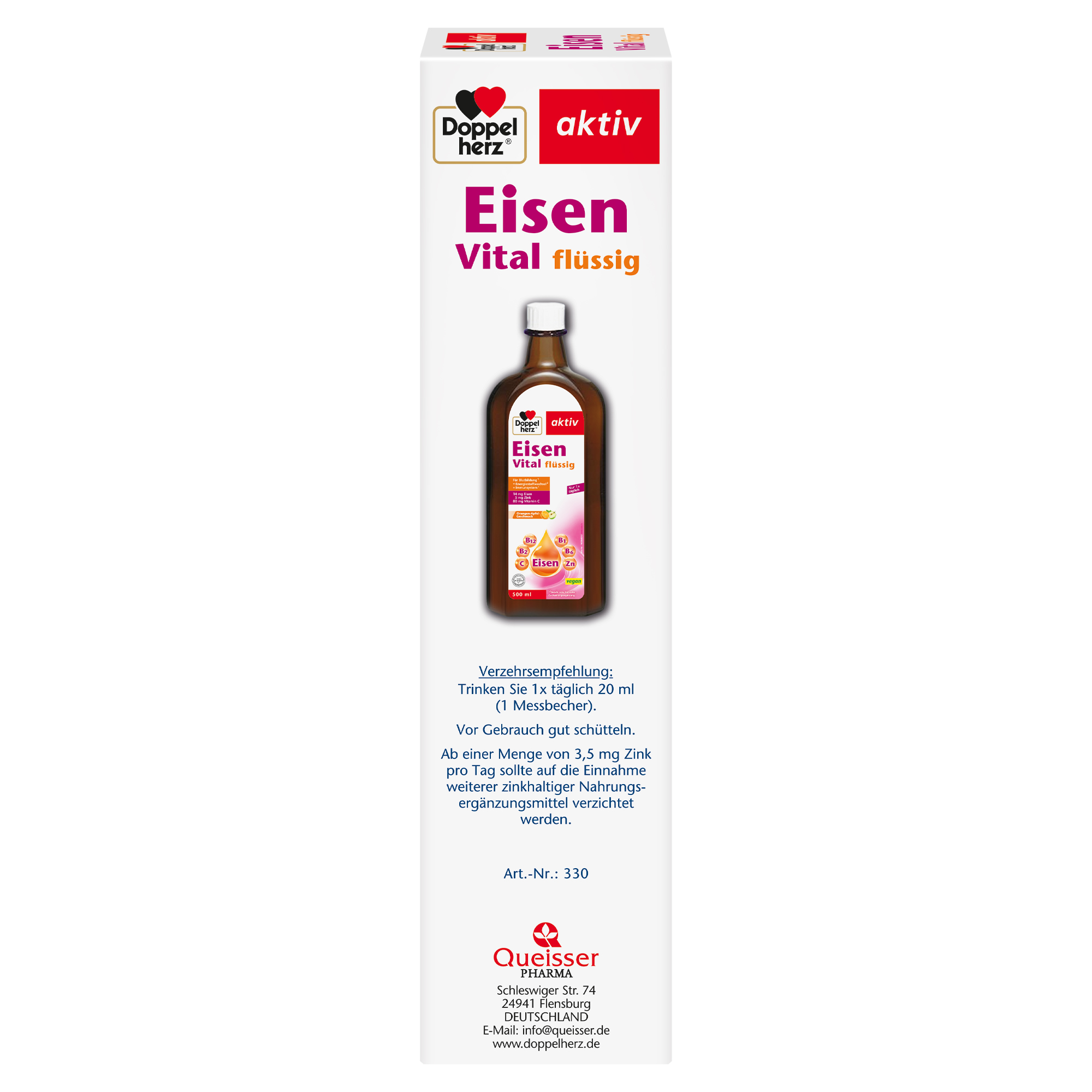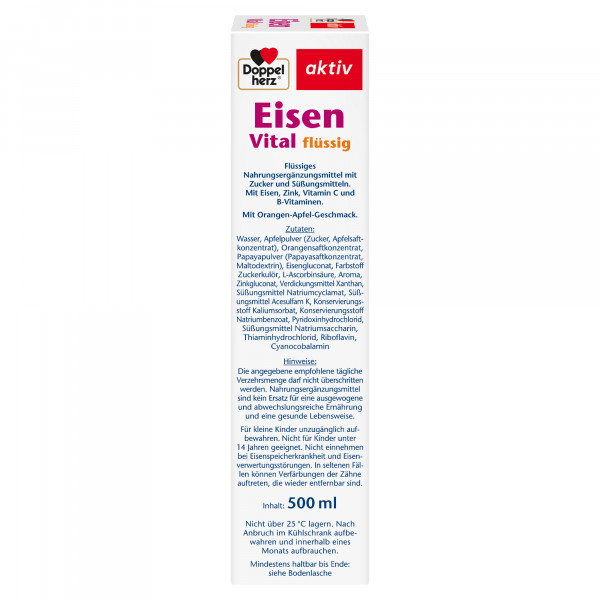 DoppelherzNahrungsergänzungsmittel sind kein Ersatz für eine ausgewogene und abwechslungsreiche Ernährung und eine gesunde Lebensweise. Die angegebene empfohlene tägliche Verzehrsmenge darf nicht überschritten werden. Außerhalb der Reichweite von kleinen Kindern aufbewahren.