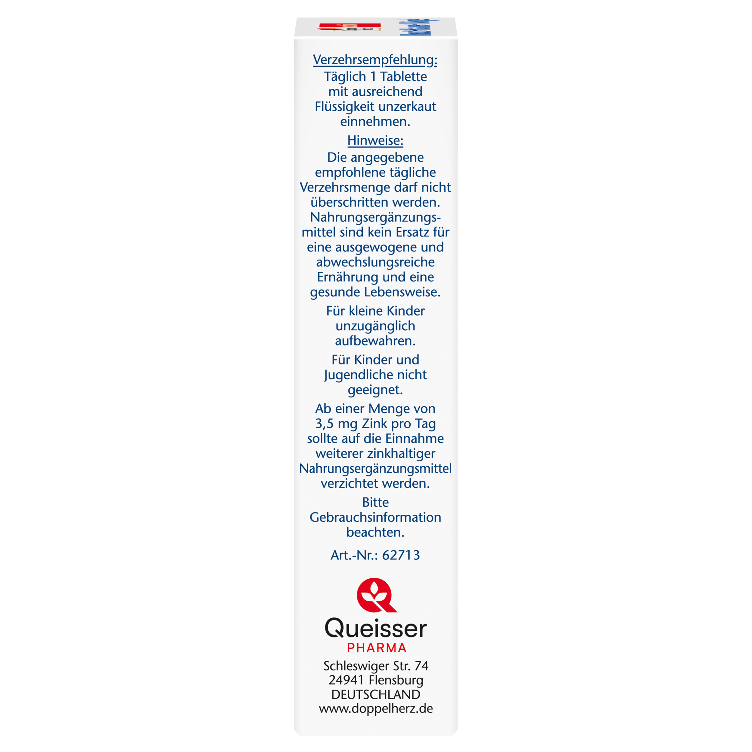 DoppelherzNahrungsergänzungsmittel sind kein Ersatz für eine ausgewogene und abwechslungsreiche Ernährung und eine gesunde Lebensweise. Die angegebene empfohlene tägliche Verzehrsmenge darf nicht überschritten werden. Außerhalb der Reichweite von kleinen Kindern aufbewahren.