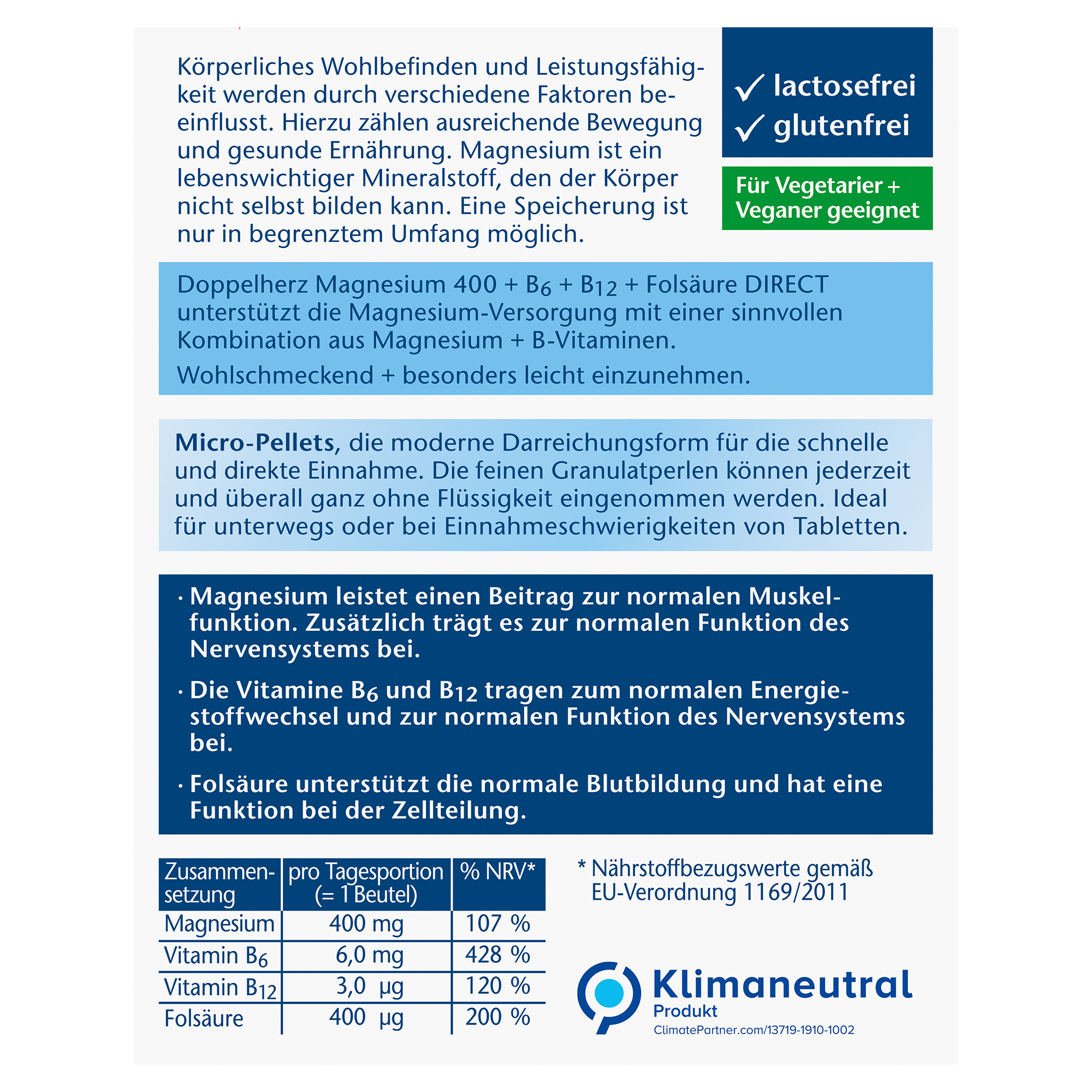 • Die Vitamine B6 und B12 unterstützen den normalen Energiestoffwechsel – Folsäure unterstützt die normale Blutbildung