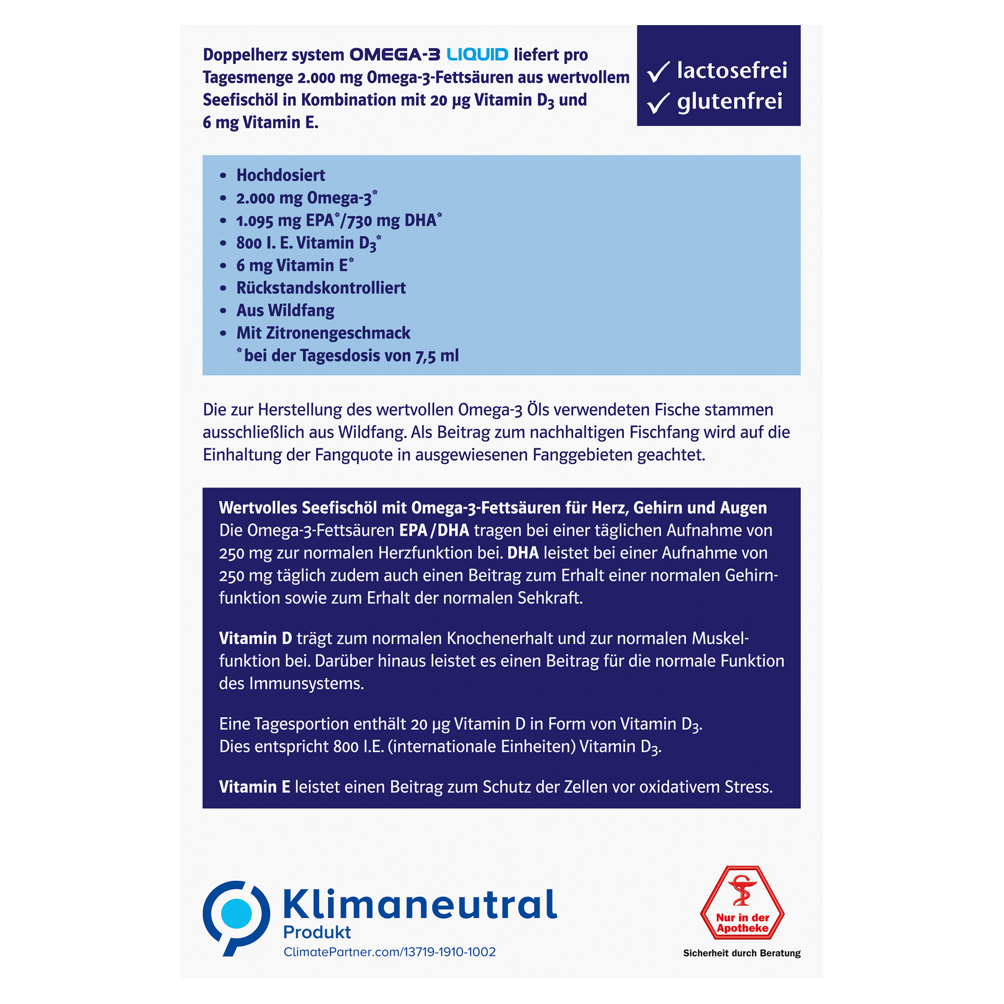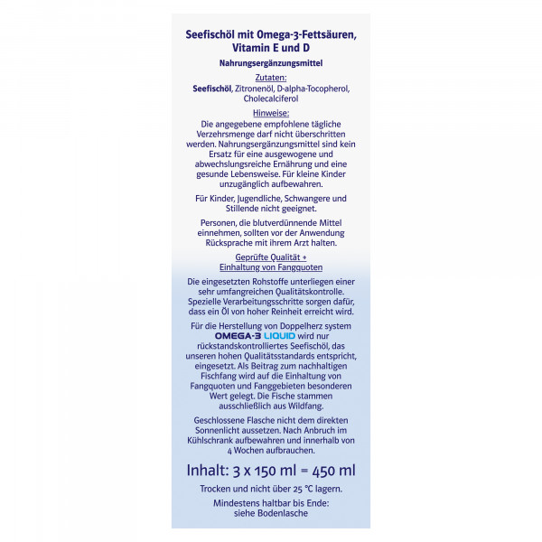 DoppelherzNahrungsergänzungsmittel sind kein Ersatz für eine ausgewogene und abwechslungsreiche Ernährung und eine gesunde Lebensweise. Die angegebene empfohlene tägliche Verzehrsmenge darf nicht überschritten werden. Außerhalb der Reichweite von kleinen Kindern aufbewahren.