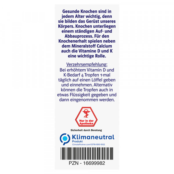 • Vitamin K trägt wie Vitamin D zum Erhalt normaler Knochen bei