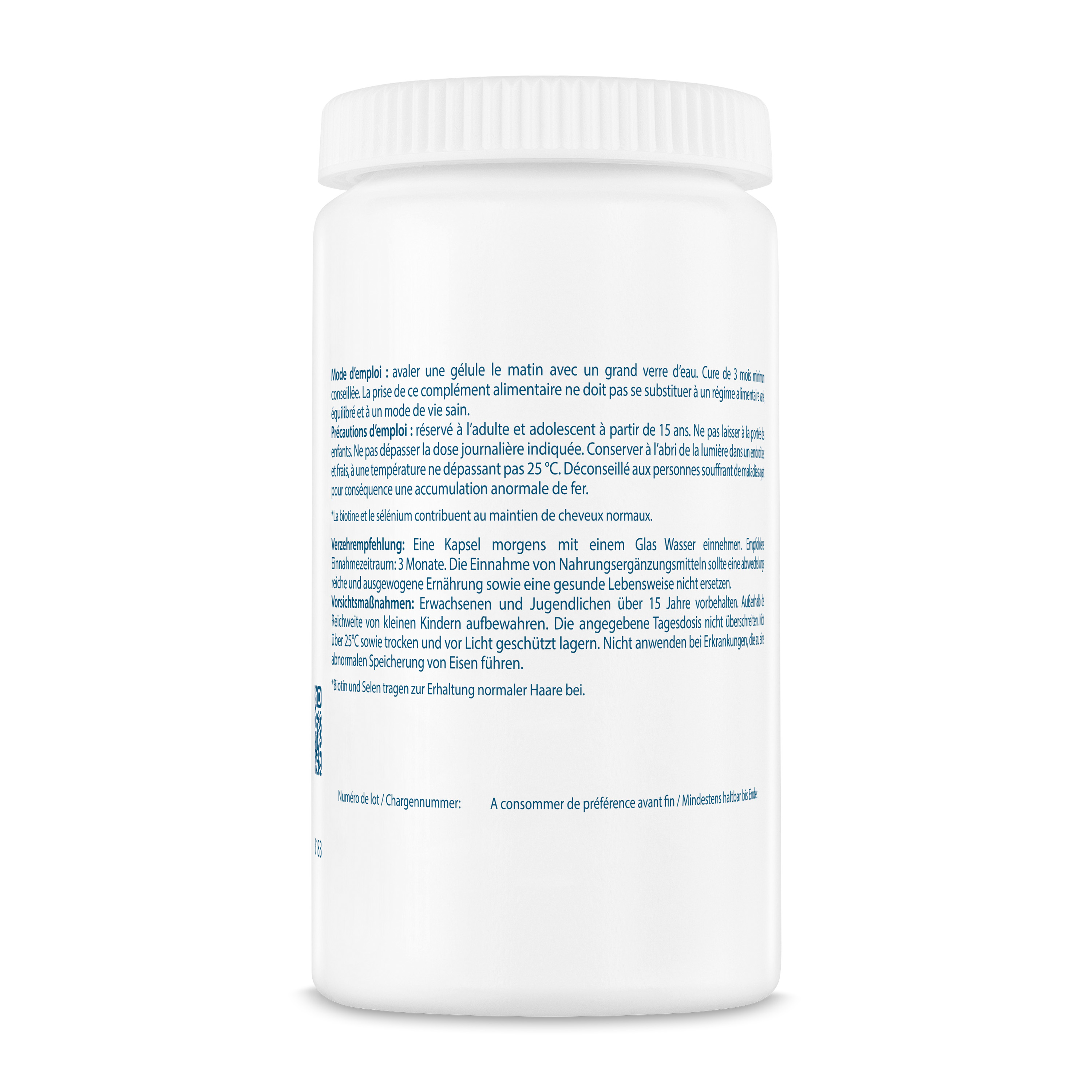 • *Biotin und Selen tragen zur Erhaltung normaler Haare bei