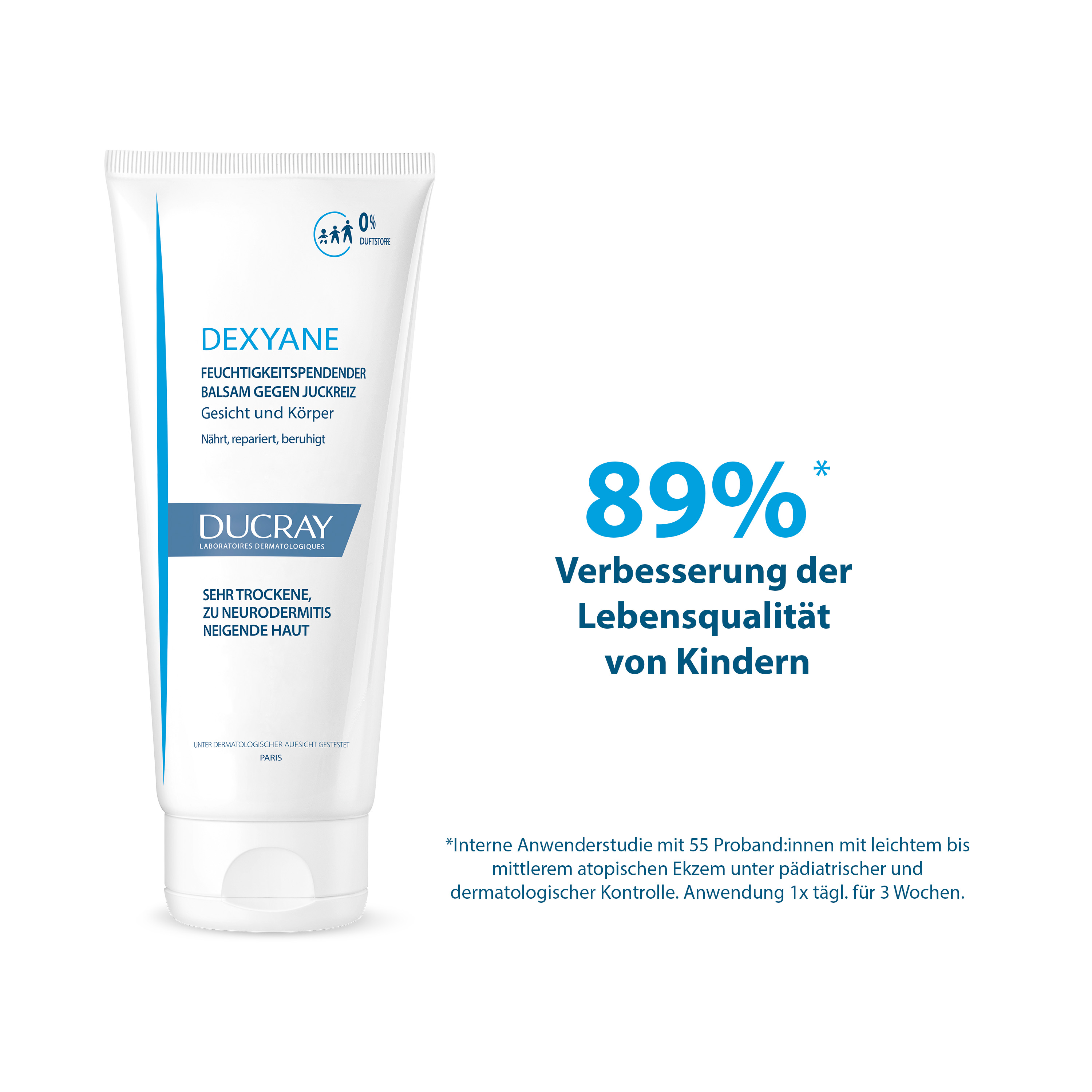 Das Dexyane Balsam gegen Juckreiz ist für die tägliche Gesichts- und Körperpflege bestens geeignet. Das Produkt vermindert Juckreiz, der duch Hauttrockenheit bedingt ist, und spendet dabei intensive Feuchtigkeit.