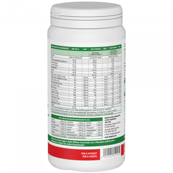 Die angegebene empfohlene tägliche Verzehrsmenge darf nicht überschritten werden. Nahrungsergänzungsmittel sind kein Ersatz für eine ausgewogene und abwechslungsreiche Ernährung und gesunde Lebensweise. Für kleine Kinder unzugänglich aufbewahren.