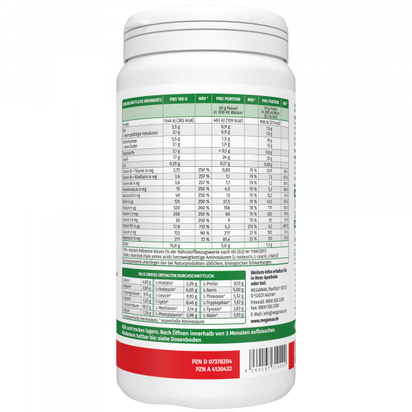 Zwei Esslöffel (ca. 30 g) in 300 ml Wasser oder Magermilch einrühren und mit dem Megamax-Mixbecher ca. 30 Sekunden lang kräftig schütteln. Vorzugsweise zwischen den Mahlzeiten und nach dem Training, oder im Rahmen einer kalorienreduzierten Diät nach Plan trinken.