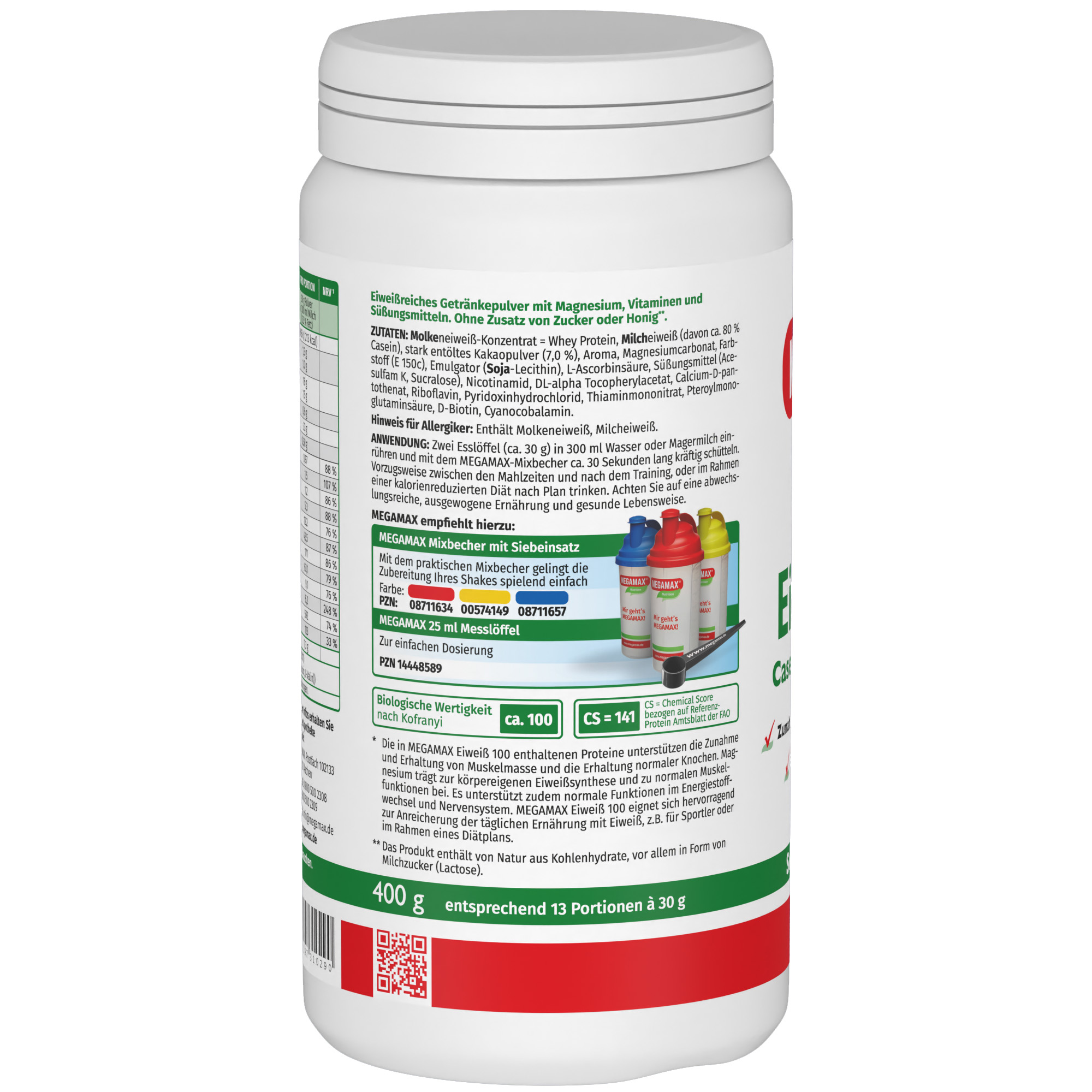 Molkeneiweiß-Konzentrat = Whey Protein, Milcheiweiß (davon ca. 80% Casein), stark entöltes Kakaopulver (7,0%), Aroma, Magnesiumcarbonat, Farbstoff (E 150c), Emulgator (Soja-Lecithin), L-Ascorbinsäure, Süßungsmittel (Acesulfam K, Sucralose), Nicotinamid, DL-alpha Tocopherylacetat, Calcium-D-pantothenat, Riboflavin, Pyridoxinhydrochlorid, Thiaminmononitrat, Pteroylmonoglutaminsäure, D-Biotin, Cyanocobalamin.