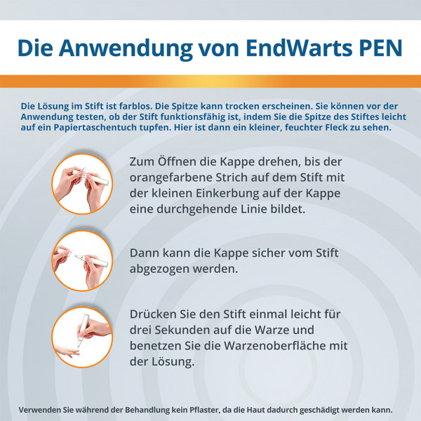 • Verwenden Sie EndWarts Pen nicht in Kombination mit anderen Warzenentfernungsmethoden.
