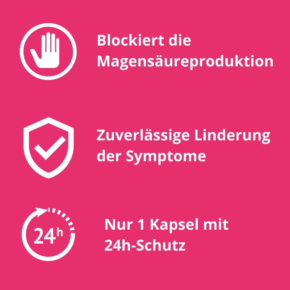 - SÄURE-PRODUKTION VERMINDERN: Der Wirkstoff Esomeprazol reduziert als Protonenpumpenhemmer die Produktion übermäßiger Magensäure und lindert Magen- und Darmbeschwerden mit Reflux-Symptomen
