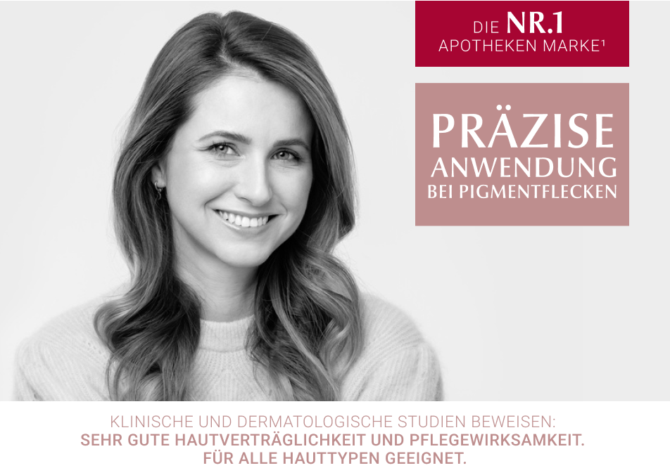 - Den Stift punktuell auf den Pigmentfleck auftragen und direkten Augenkontakt vermeiden