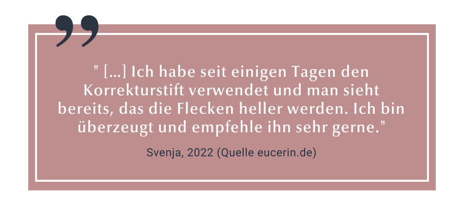 Erste Ergebnisse sind schon nach 2 Wochen sichtbar und verbessern sich bei kontinuierlicher Anwendung stetig weiter. Die sehr gute Hautverträglichkeit und die Wirksamkeit des Korrekturstiftes ist klinisch und dermatologisch erwiesen.