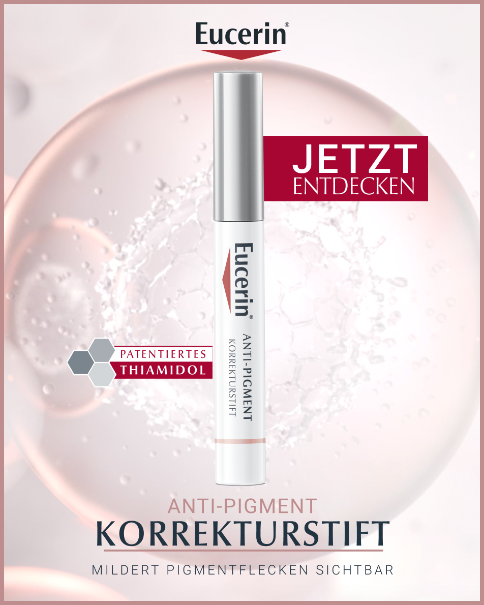 Der Eucerin Anti-Pigment Korrekturstift ist speziell für die Behandlung einzelner Pigmentflecken und sogenannter Altersflecken geeignet. Die Formel mit patentiertem Thiamidol® wirkt Pigmentflecken am Ursprung entgegen, mildert diese bei regelmäßiger Anwendung und verhindert, dass neue Flecken entstehen. Der Haut wird so ein gleichmäßigerer Hautton verliehen.